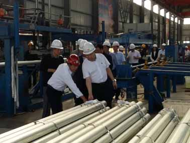 公司相关领导陪同检查指导。 (制管一车间 刘秀兰)