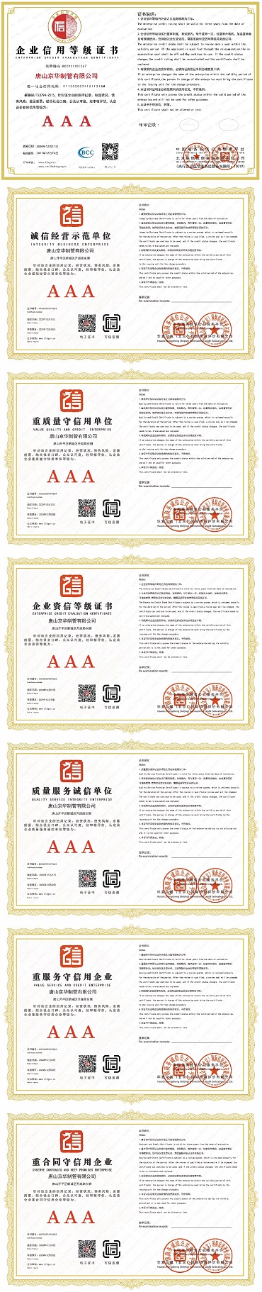 根据企业信用记录、经营状况、债务风险、发展前景、结合社会口碑、公众认可度,经过审核评估,九游官方网站被认定为“AAA级企业资信等级”、“AAA级企业信用等级”、“AAA级诚信经营示范单位”、“AAA级质量服务诚信单位”、“AAA级重服务守信用企业”、“AAA级重质量守信用单位”、“AAA级重合同守信用企业”。