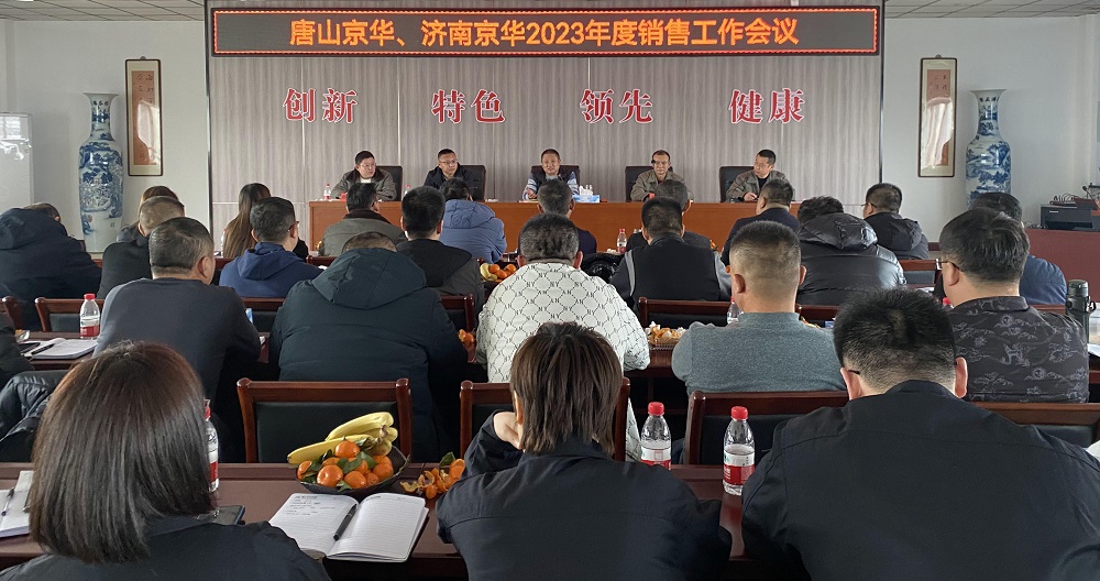 2月3日,唐山京华、济南京华销售会议在五楼会议室召开,会议总结了2022年度销售工作,研究部署了2023年的销售经营方向及目标任务。总经理温朝江、供销副总胡武、销售部长吴红涛、销售部各副部长、各片区主管、驻外业务经理,济南京华销售部长励冠宇及生产部长杜成友等参会,会议由销售部长吴红涛主持。