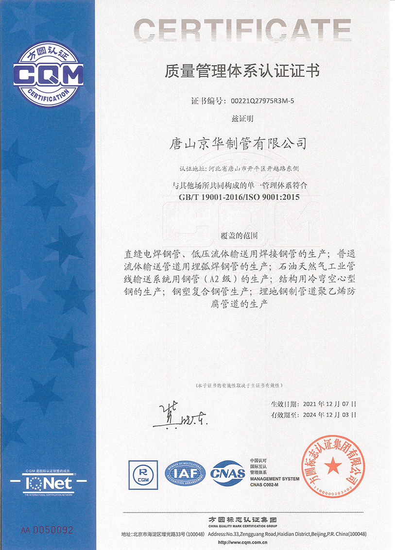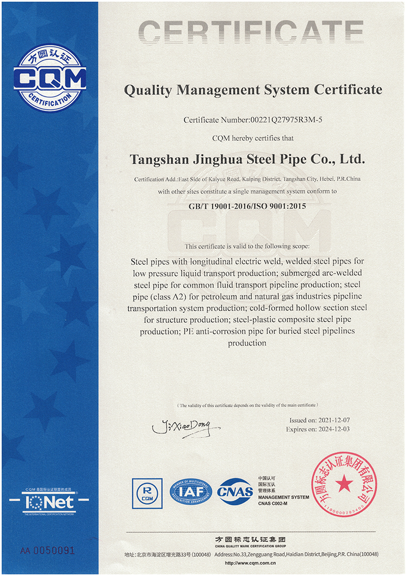 WELCOME TO Tangshan Jinghua Steel Pipe Co.,Ltd.