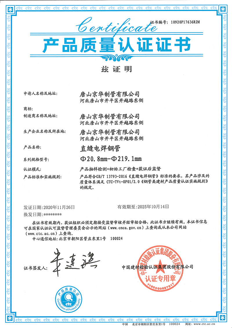 WELCOME TO Tangshan Jinghua Steel Pipe Co.,Ltd.